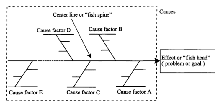 The diagram is called "fishbone" due to its resemblance to the skeleton of a fish, with the main "spine" representing the problem or effect, and the "bones" representing the various categories of causes.