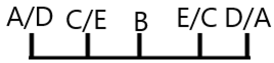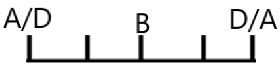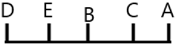 - A and D are sitting at extreme ends while B is sitting exactly in the middle.