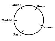 Five friends London, Madrid, Paris, Rome, and Vienna are arranged in a circle facing the center.