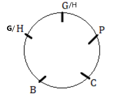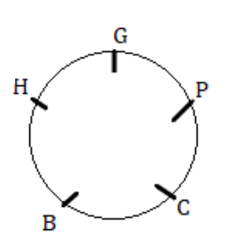 Five friends P, B, C, G and H are sitting around a circular table facing towards the centre. B is sitting to the immediate left of C. G and H are not the immediate neighbour of C. H is sitting second to the right of P. Who is sitting on the immediate left of B?