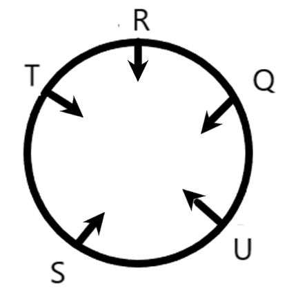 Seven friends M, N, J, K, P, Q and R are sitting in a circle facing at the centre but not necessarily in the same order.
