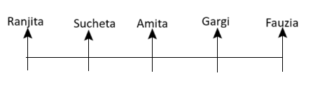Five girls, Amita, Fauzia, Gargi, Ranjita and Sucheta, are sitting in a straight line. All are facing the north direction. Sucheta sits second to the