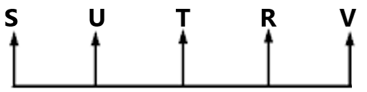 Five persons R, S, T, U and V are sitting in a straight line facing north.