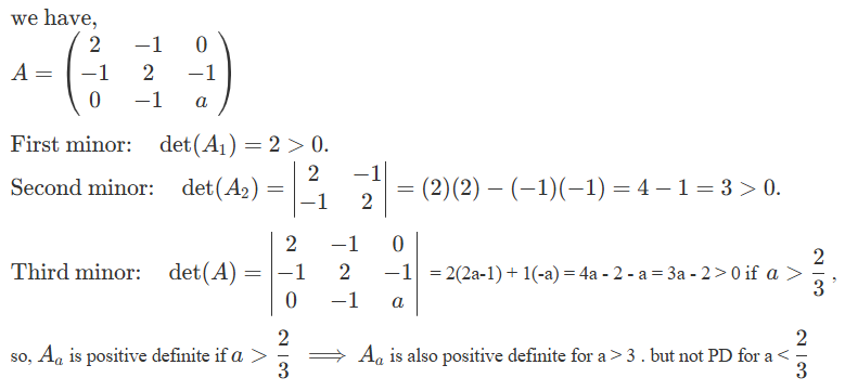 Correct option is BResult used : A matrix is positive definite if and only if all its leading principal minors are positive .