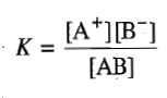 According to the Arrhenius theory of electrolytic dissociation, there exists an equilibrium between the undissociated molecule AB and the ions