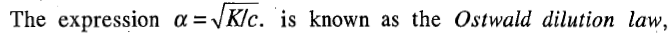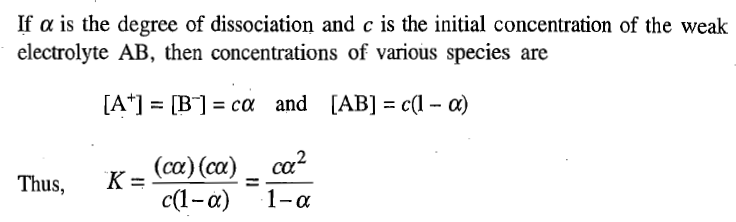 Arrhenius suggested that the degree of dissociation of an electrolyte can be calculated using the expression