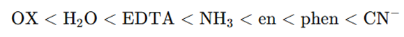 If the ligands are arranged in increasing order of crystal field splitting: