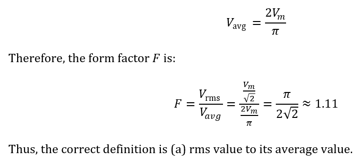 Form factor of a sinusoidal wave is defined as the ratio of its: