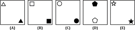 In the given figural series all figure in the upper left corner and the same in the lower right corner is filled except in the figure D.