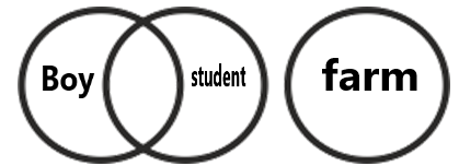 Correct Venn Diagram: Shows Boy and Student overlapping, while Farm remains separate.