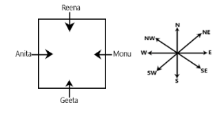 Eight girls G, K, P, A, D, Q, Sand M are sitting around a square table but not necessarily in the same order. Four of them sit at four corners of the table while four sit in the middle of each of four sides. The one who sits at the four corners face outside the center while those who sit in the middle of the sides face inside.