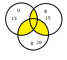 ∴ n (O ∪ R ∪ B) = n (O) + n (R) + n (B) - n (O ∩ R) - n (R ∩ B) - n (B ∩ O) + n(O ∩ R ∩ B)