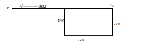 From a point 'P', Rohit walks for 5 km towards east direction. He then turns right and walks for 2 km. Again he turns right and walks for 2 km; He then again turns right and walks for 2 km to reach a point 'Q'. What is the distance between the points 'P' and 'Q'?