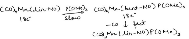 In special situations, some ligands participate in substitution reactions leading to associative pathways. These ligands can adopt multiple motifs for binding to the metal, each of which involves a different number of electrons "donated." Nitric oxide typically binds to metals to make a linear MNO arrangement, wherein the nitrogen oxide is said to donate 3e- to the metal. In the course of substitution reactions, the MNO unit can bend, converting the 3e- linear NO ligand to a 1e- bent NO ligand.