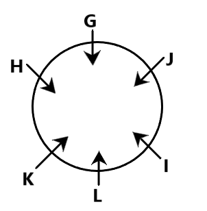 G, H, I, J, K and L are six friends sitting around a circular table facing the centre of the table discussing the outcome of a cricket match. I is an immediate neighbour of both L and J. K is not the immediate neighbour of J. H is seated second to the left of L. Which of the following options represents I’s position from G?