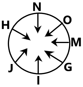 Seven friends M, N, J, K, P, Q and R are sitting in a circle facing at the centre but not necessarily in the same order.
