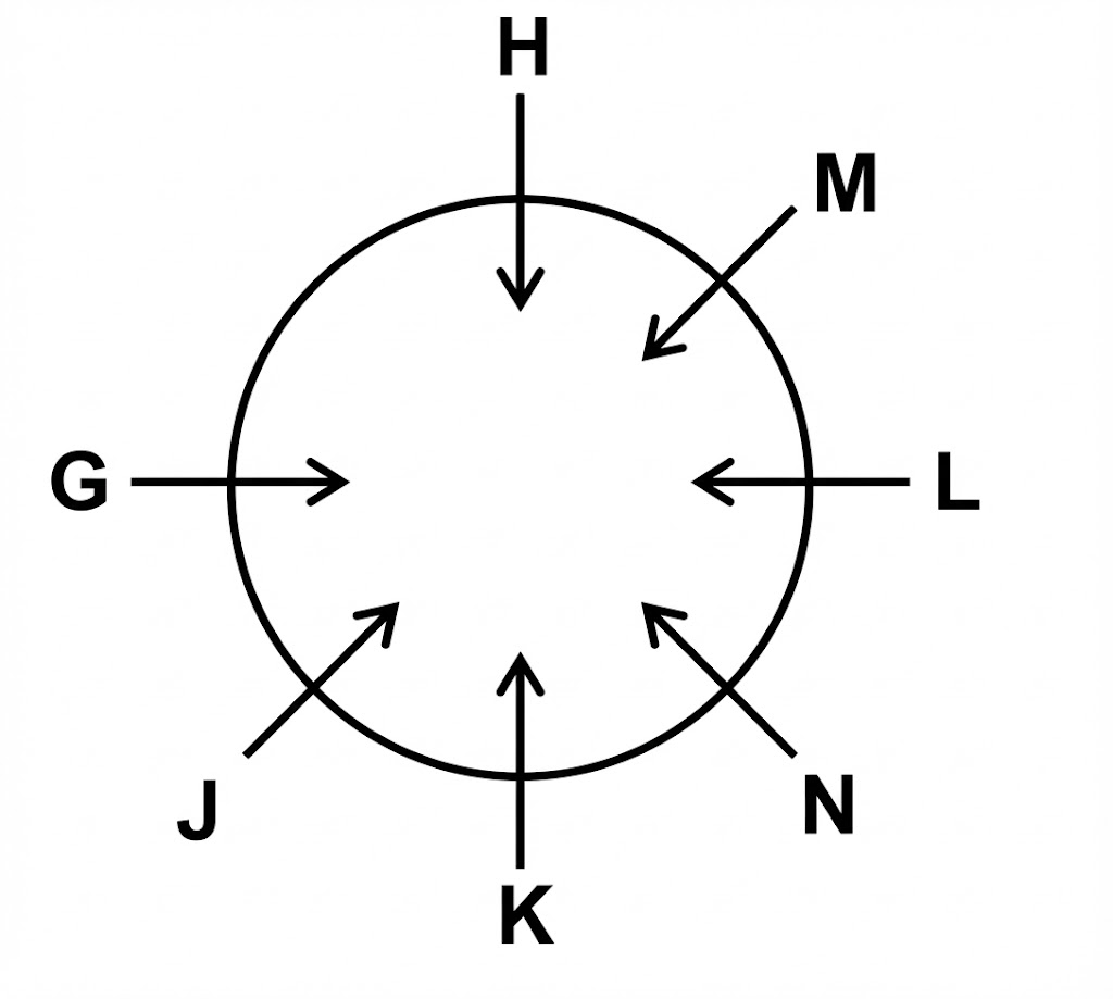 G, H, J, K, L, M and N are sitting in a circle facing at the center. “M” sits third to the right of “K”. “J” sits second to the left of “N”. “L” is an immediate neighbour of “M”. “G” sits immediate right of “H”. Only one person sits between “G” and “K”. Who sits second to the right of “L”?