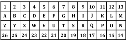 Logic: Followed pattern (−2, −3, +2, +3) on letter indices.
