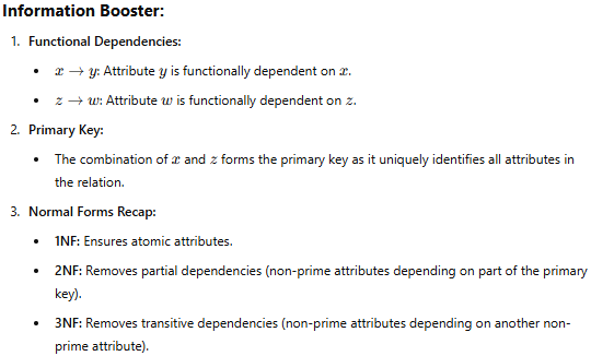 Statement C: xz is correctly identified as the primary key since it uniquely determines all attributes in R(x, y, z, w).