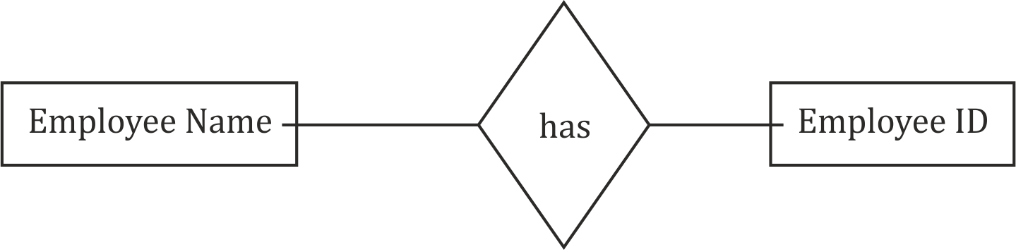 - Modeling note: Practically, both “name” and “ID” are attributes of the Employee entity; the diagram simplifies them as boxes for the relationship question.