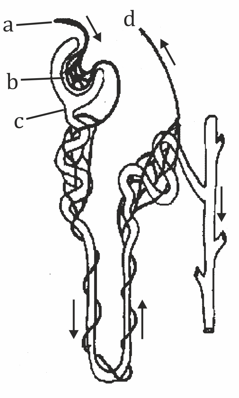 b - Glomerulus- The glomerulus is a network of tiny blood vessels (capillaries) located within the kidney, specifically in the nephron, which is the functional unit of the kidney. The primary function of the glomerulus is to filter blood as the first step in the process of urine formation.