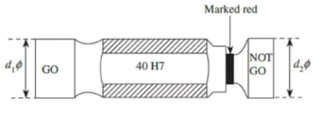 minimum limit (i.e., the part must fit the "GO" gauge), while the "NO GO" gauge checks the