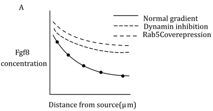 Dynamin inhibition blocks endocytosis, reducing Fgf8 removal, resulting in a flatter and higher concentration gradient.