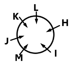 Given: H, I, J, K, L and M are sitting around a circular table facing the centre (but not necessarily in the same order).