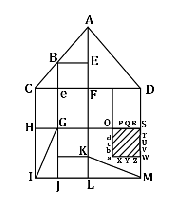 ABE, BCe, ACF, AFD, ACD, GIH, GIJ, KLM, PdO, QcO, RbO, SaO, SaW, TXW, UYW, VZW. There is a total of 16 triangles in the figure.