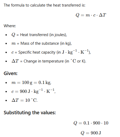 How much heat should be transferred to a 100 g block of aluminum (specific heat to increase its its temperature by 10° C?
