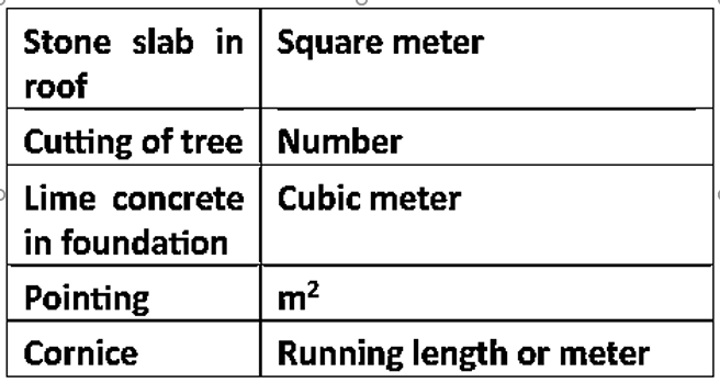 Identify the correctly matched pair(s) from the following based on the unit of measurement used for the estimation of different items of work.