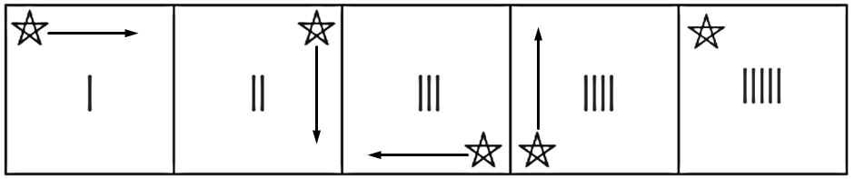 Logic: Star is moving at corner and middle lines are increasing + 1.