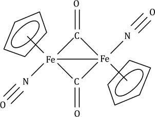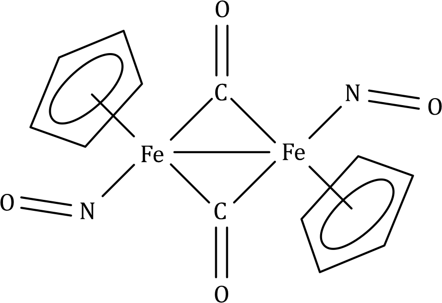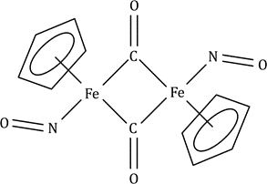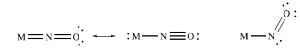 The NO molecule can bind to a low oxidation state metal atom, and once coordinated NO is known as a nitrosyl ligand. Terminally bound NO can adopt two different bonding modes: linear or bent. In the linear mode, NO donates three electrons to the metal centre. Experimentally, a ‘linear’ MNO unit may have M–N–O bond angles in the range 165–180°, and in the IR spectrum, the vibrational wavenumber for the νNO mode lies in the approximate range 1650–1900 cm-1. In the bent mode, NO donates one electron to the metal centre. Bent nitrosyl ligands are characterized by having M–N–O bond angles in the range 120–140°, and in the IR spectrum, the νNO absorption typically lies between 1525and 1690cm-1.
