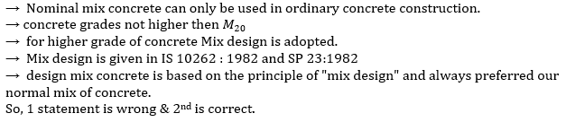 Statement 1: Nominal mix concrete may be used for concrete of M25 or higher grade.