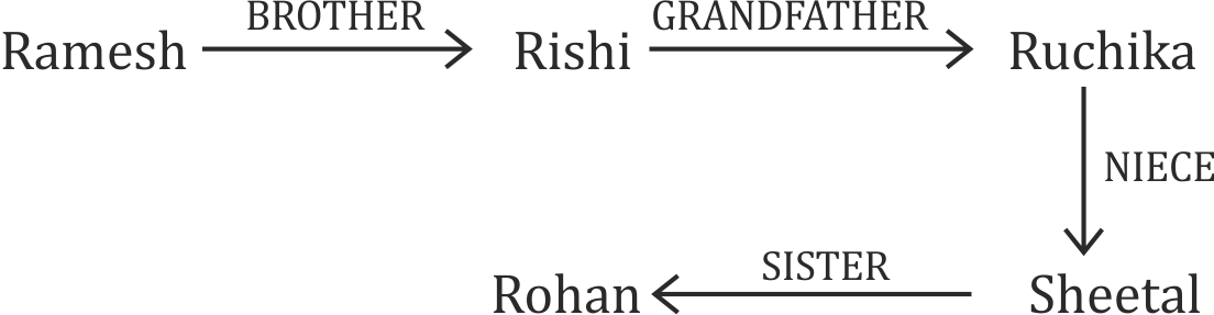 If 'A ⟶ B' means 'A is the mother (or any other relationship) of B', then using the given relationship chart, select the option that correctly depicts the meaning of 'Rohan ⟶ Rishi'.