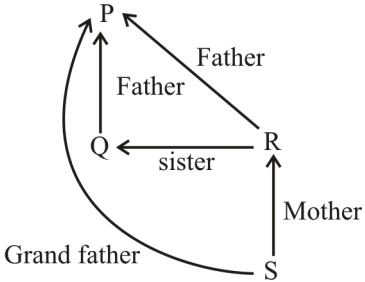 If A $ B means A is the sister of B, A # B means A is the mother of B and if A × B means A is the father of B, then what does P×Q $ R # S mean?