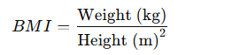 Body Mass Index (BMI) is calculated using the formula: