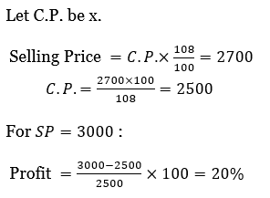 If a shopkeeper sells an item at Rs. 2,700, he makes 8% profit. If he sells the item at Rs. 3,000 what will be the percentage of profit?