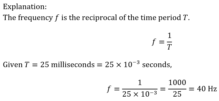 If a signal has a time period is 25 millisecond then calculate the frequency of the signal.