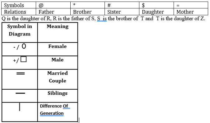 'P % Q' means 'P' is the son of 'Q'