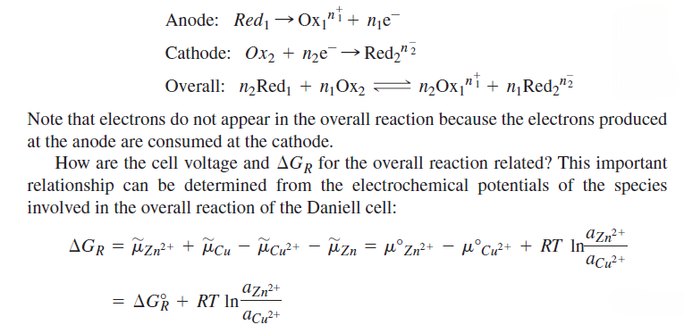 If this reaction is carried out reversibly, the electrical work done is equal to the product of the charge and the potential difference through which the charge is moved. However, the reversible work at constant pressure is also equal to