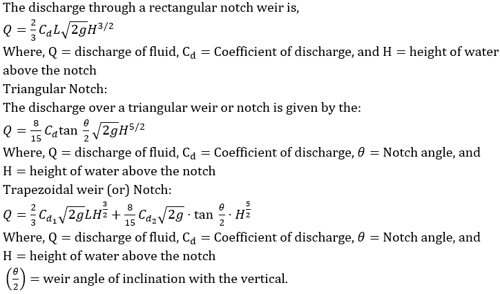 If H is the height of water over the crest then the discharge over a rectangular notch is directly proportional to -