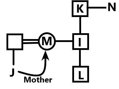 As per the diagram, M is the only sibling of I, so M is J's mother.