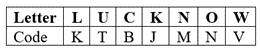 => So, "LUCKNOW" is coded as "KTBJMNV"