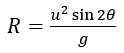 The horizontal range of a projectile is given by the formula: