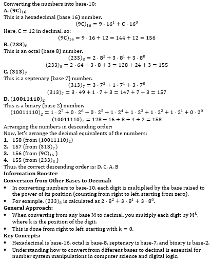 If represents a number L in base-M number system, then identify the correct descending order of the following number A-D, when converted to base-10 number system.