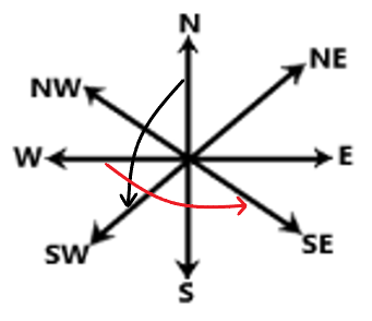 Sarang is facing West. He turns 135clockwise and then 45anticlockwise. In which direction he is facing now?