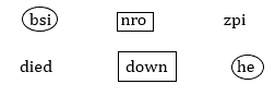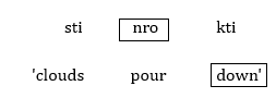 If 'sti pri nro' means 'I love coffee', 'pri min zei' means 'Coffee is hot' and 'min sti bse' means 'Love hot weather', which code stands for 'Love weather'?