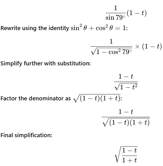 If t = cos 79°, then what is cosec 79° (1 - cos 79°) equal to ?