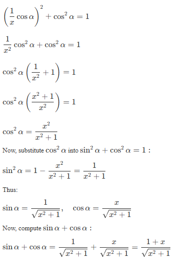 Substitute this into the Pythagorean identity :